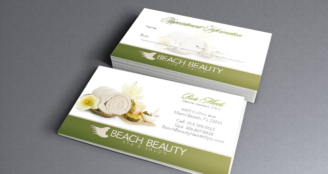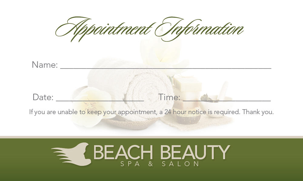 Various marketing materials for Beach Beauty Spa & Salon.