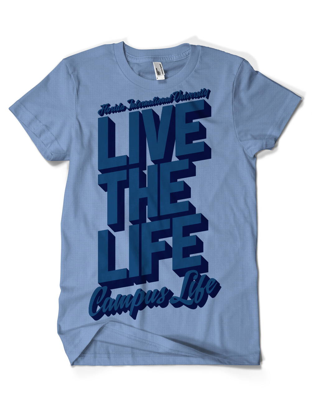 Tshirt promoting the department of Campus Life and it's motto "Live the Life".