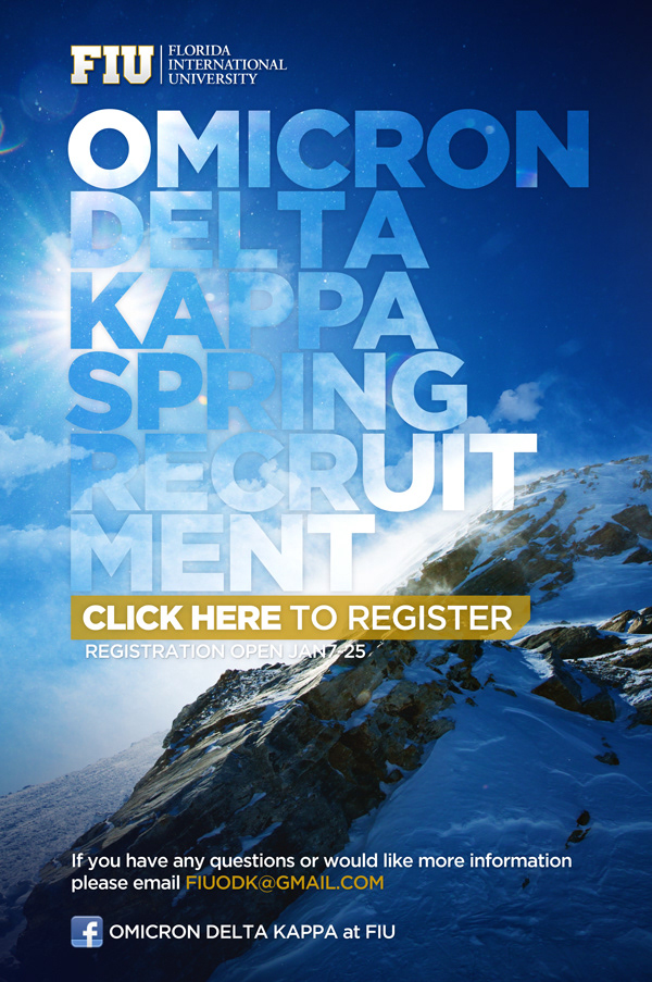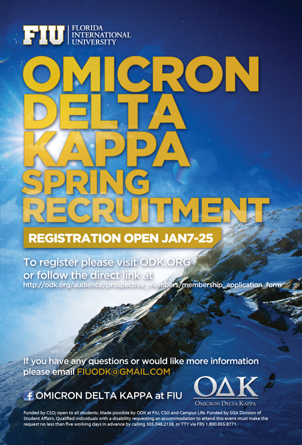 Printed flyer and e-flyer for Omicron Delta Kappa's 2013 spring recruitment week.