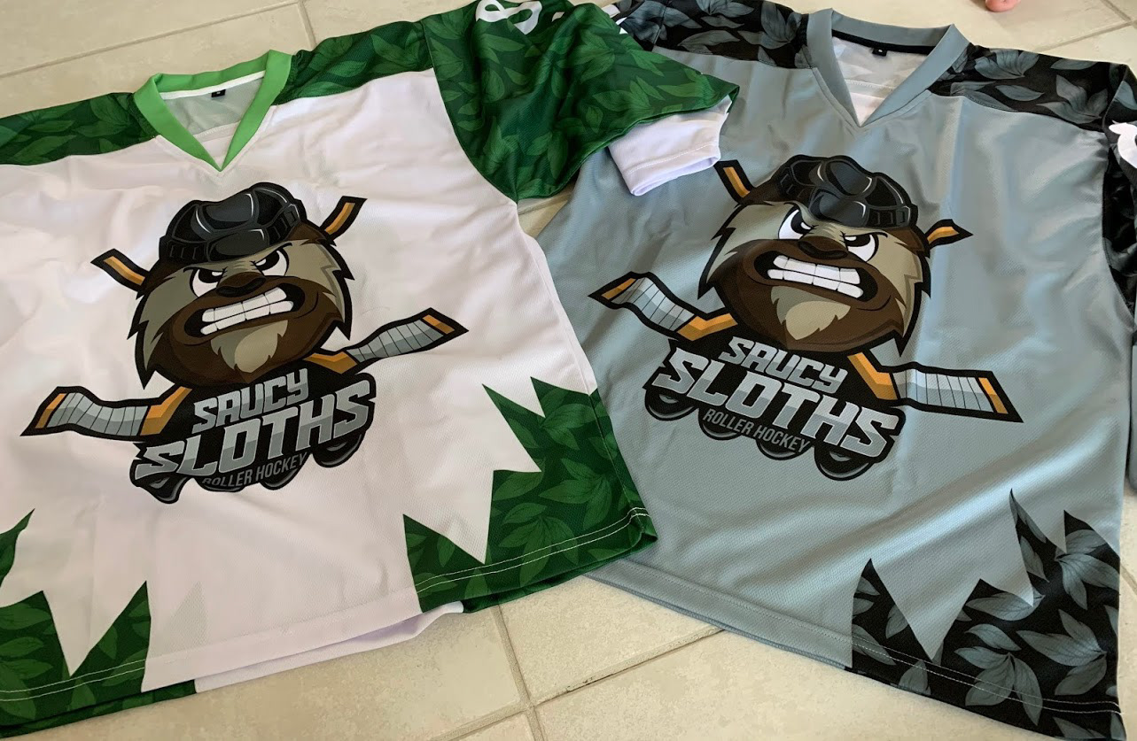 Logo Design, creative direction, layout & design. ---------------------------------------- Client: Saucy Sloths Roller Hockey Team | 2021